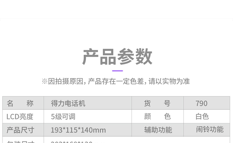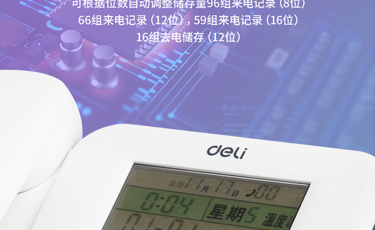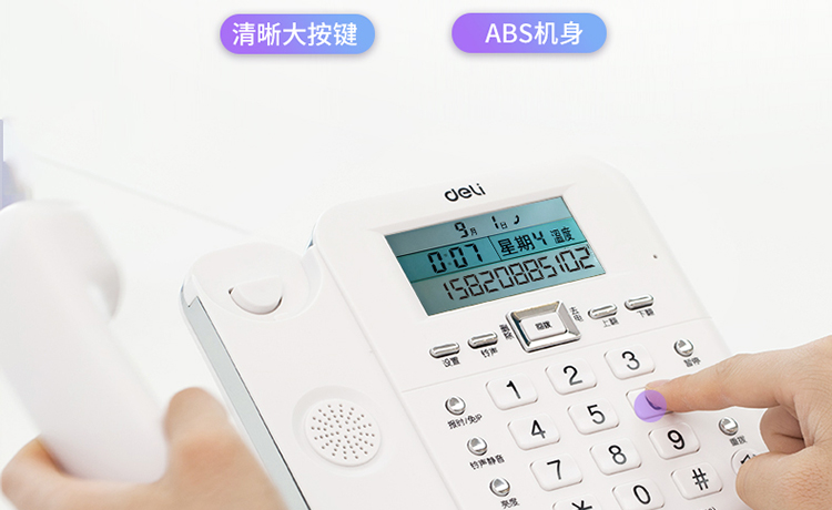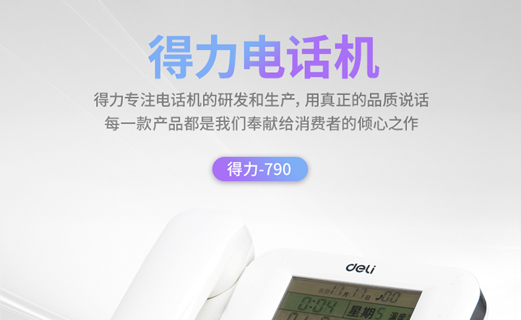 • 得力(deli) 电话机座机 固定电话 办公家用 30°倾角 温度显示790白