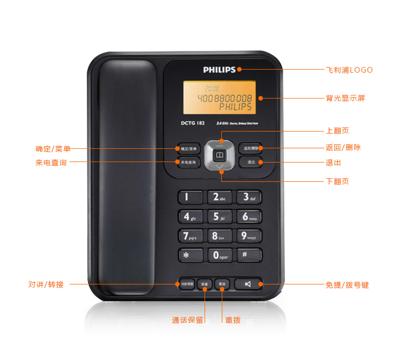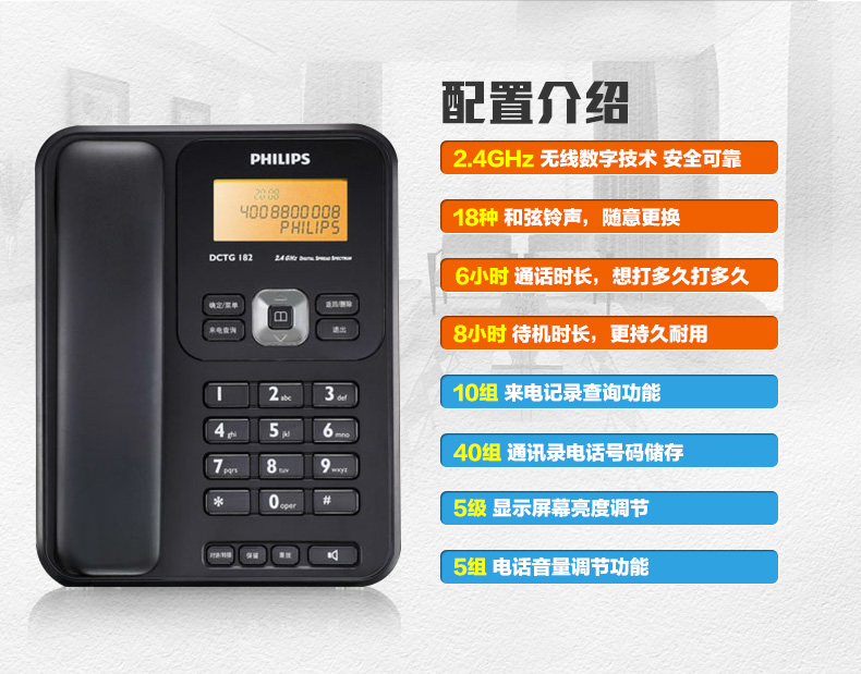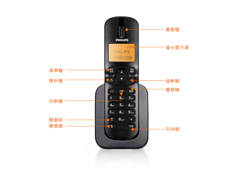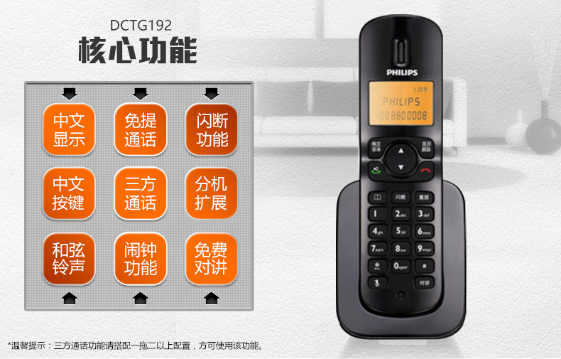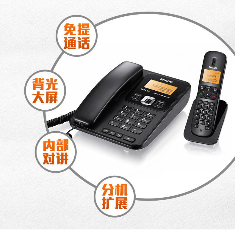 飞利浦(PHILIPS)无绳电话机 无线座机 可扩展子机 DCTG182一拖一